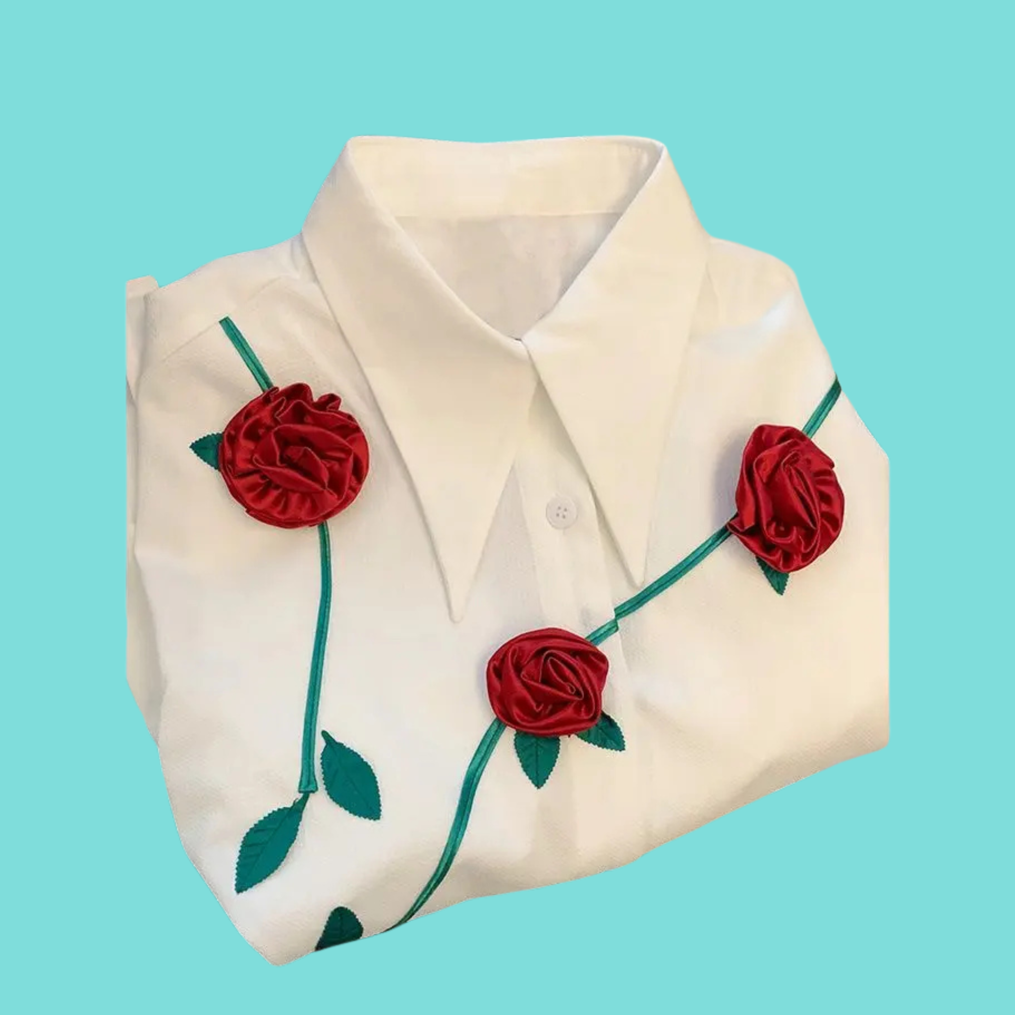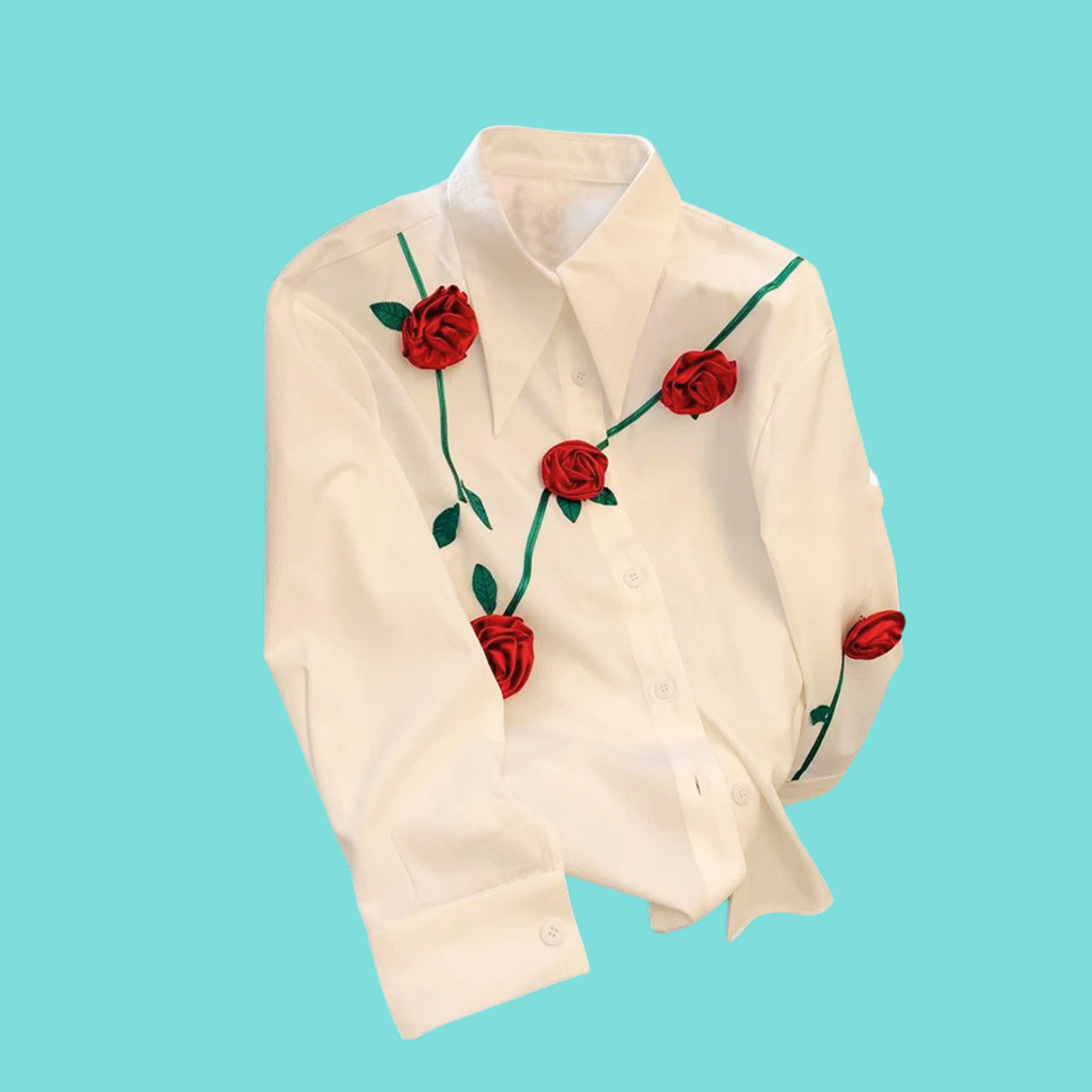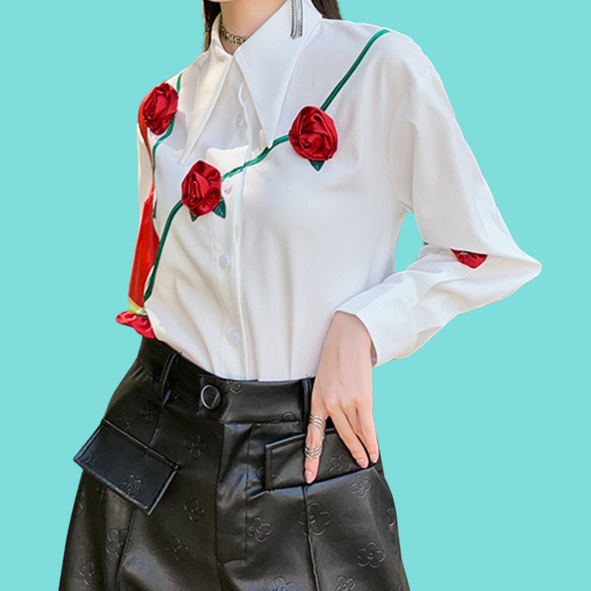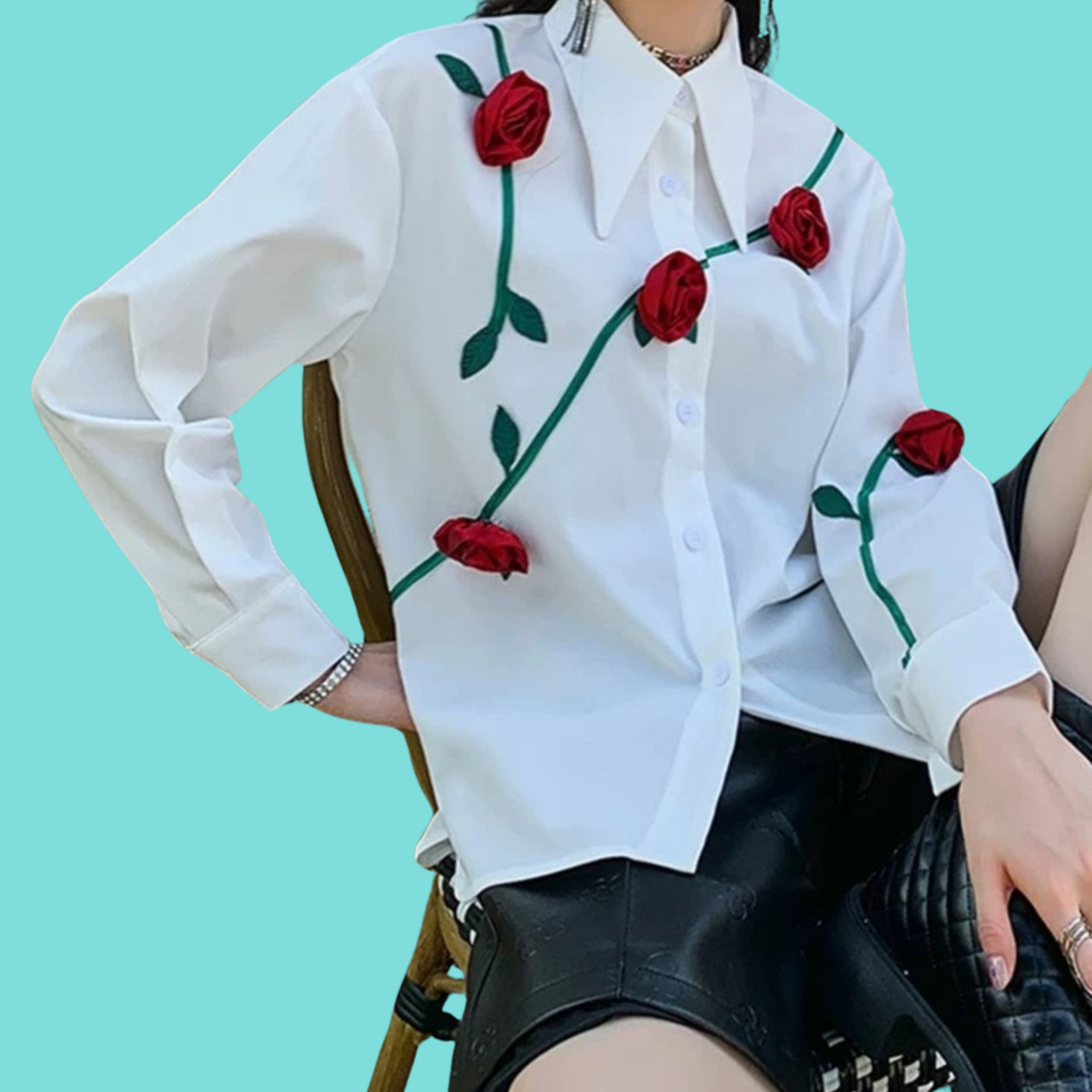 Elevate your casual wardrobe with this statement-making shirt that blends romance with modern edge. Featuring an eye-catching three-dimensional rose design, it's the perfect piece to stand out. The relaxed, loose fit offers comfort without sacrificing style, while the niche aesthetic keeps things fresh and unexpected. Whether you're channeling spring vibes or embracing autumn's moody palette, this versatile number works overtime. Dress it up or down, it's your ticket to looking effortlessly cool with personality to spare.