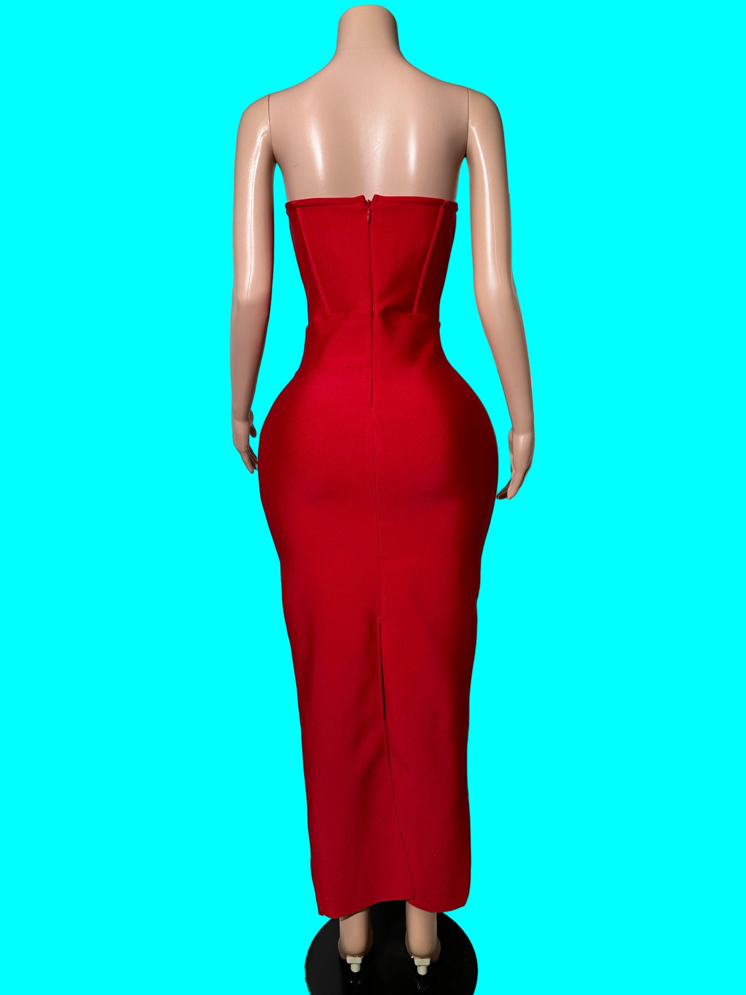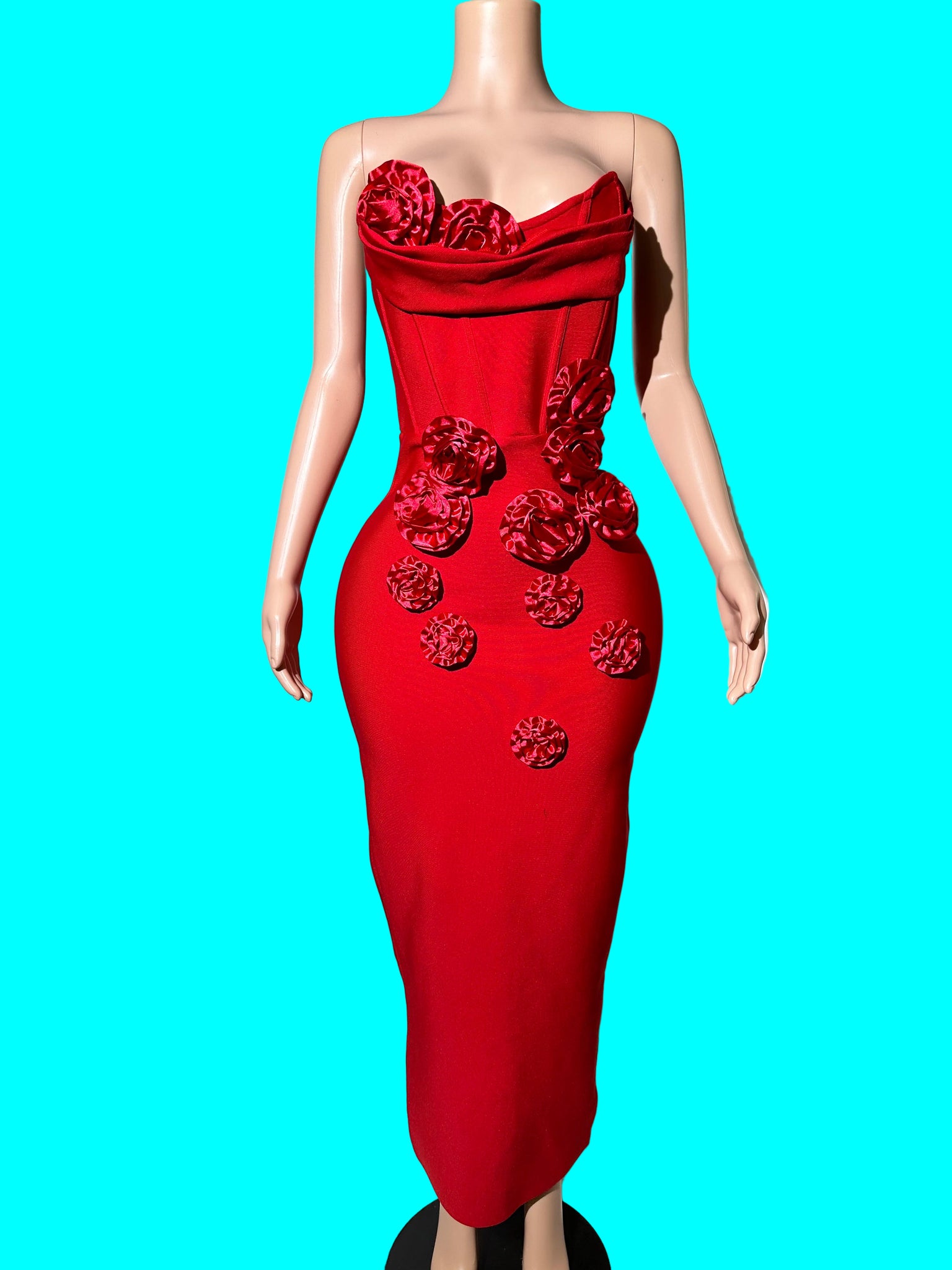 Slip into pure elegance with this stunning red bandage dress that's ready to turn heads at any evening event. The eye-catching three-dimensional floral details add a touch of whimsy and sophistication, while the strapless design keeps things sleek and chic. Crafted with quality construction, this dress hugs your curves in all the right ways, making you feel confident and fabulous. Perfect for parties, galas, or any occasion where you want to make a memorable entrance. Get ready to own the room in this show-stopping piece.