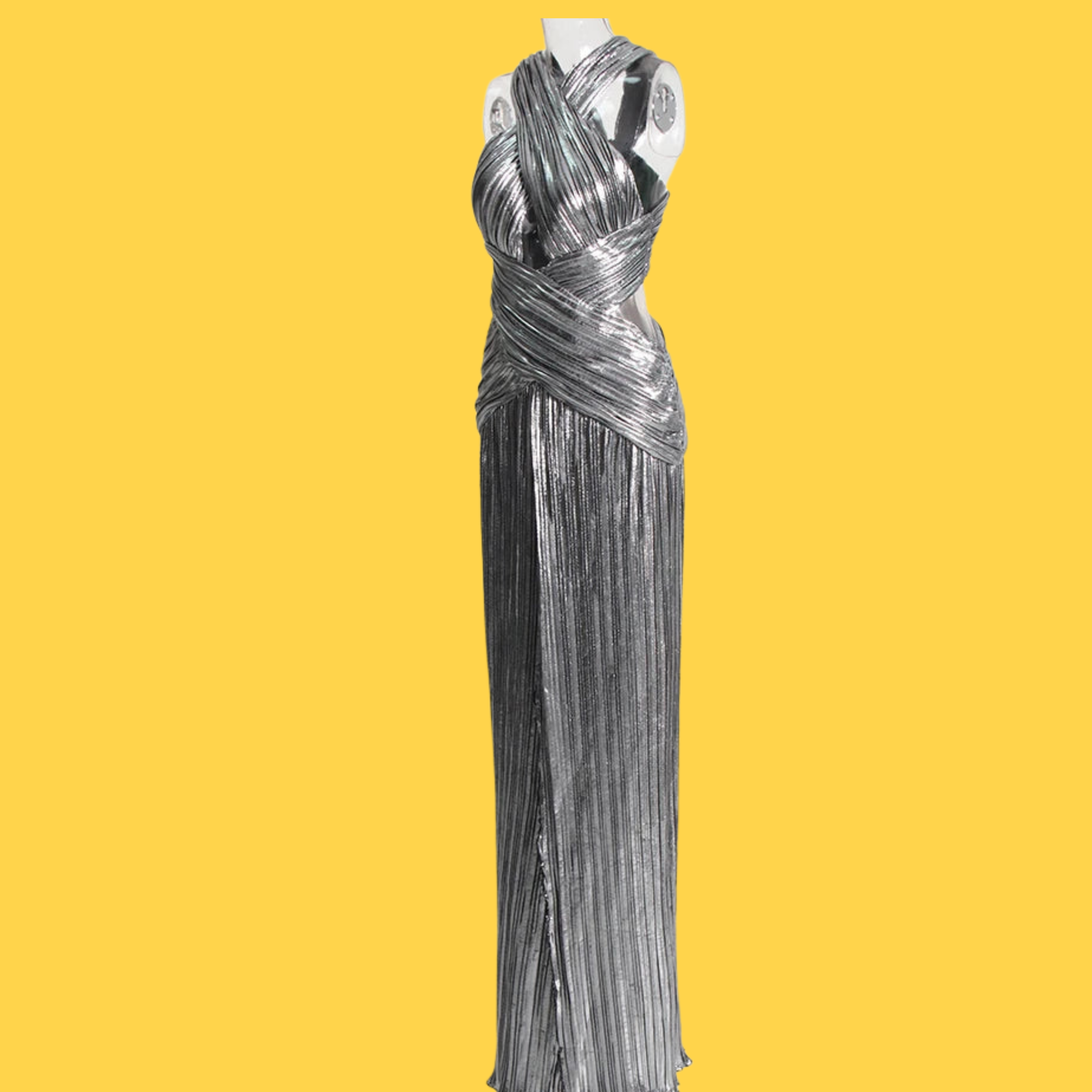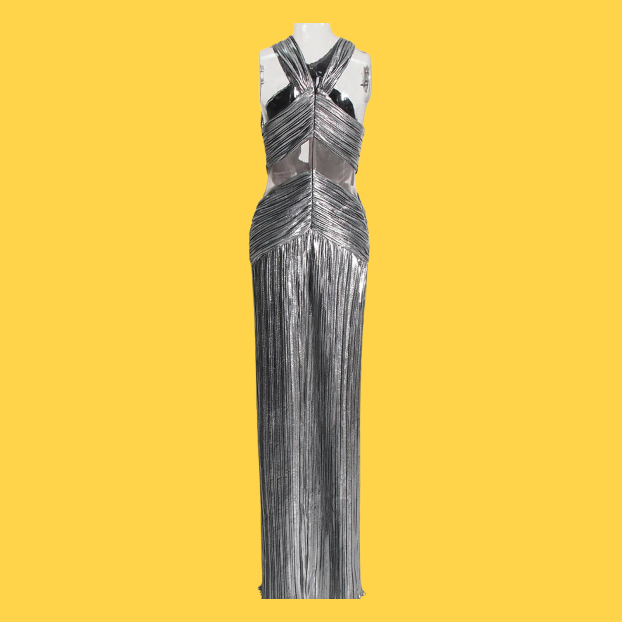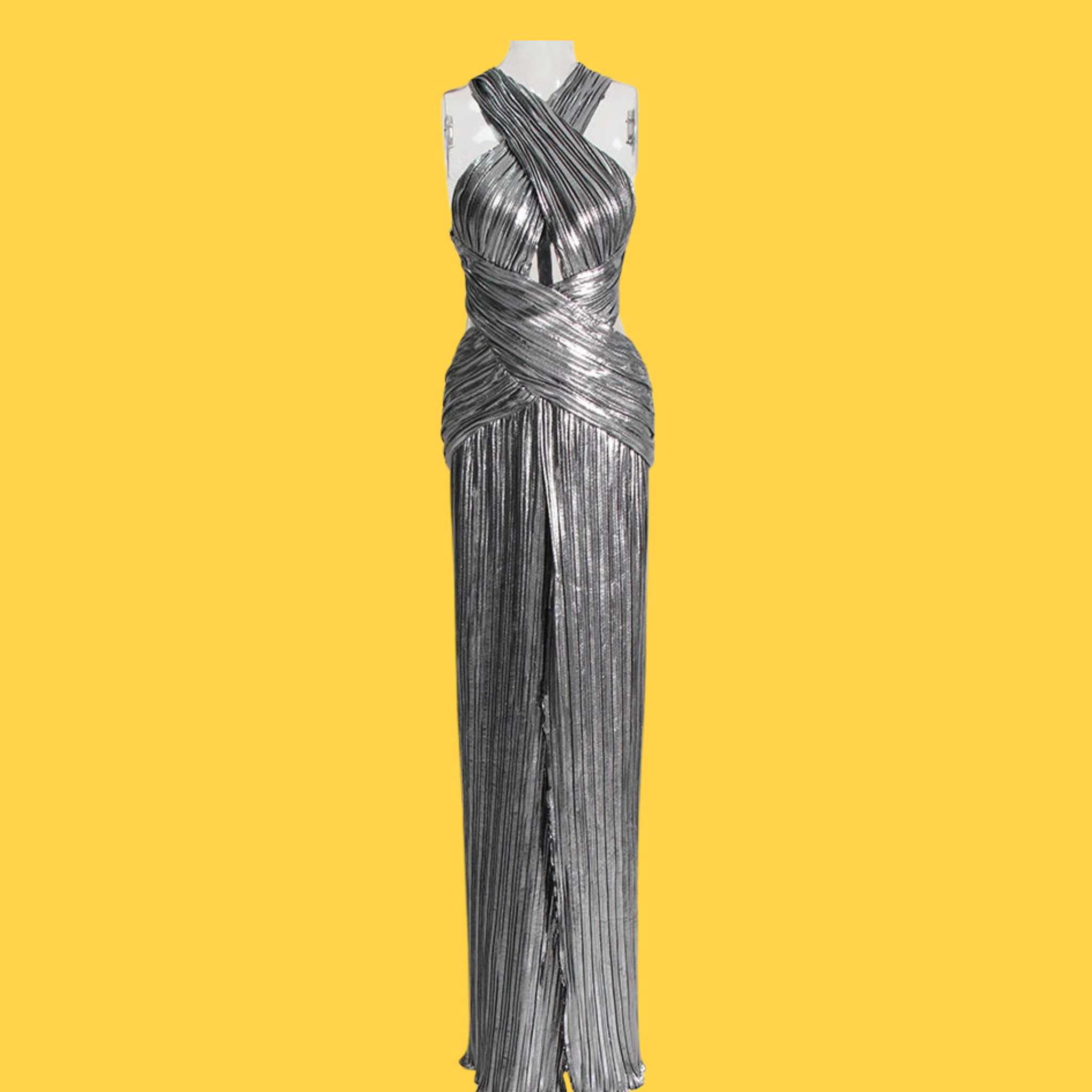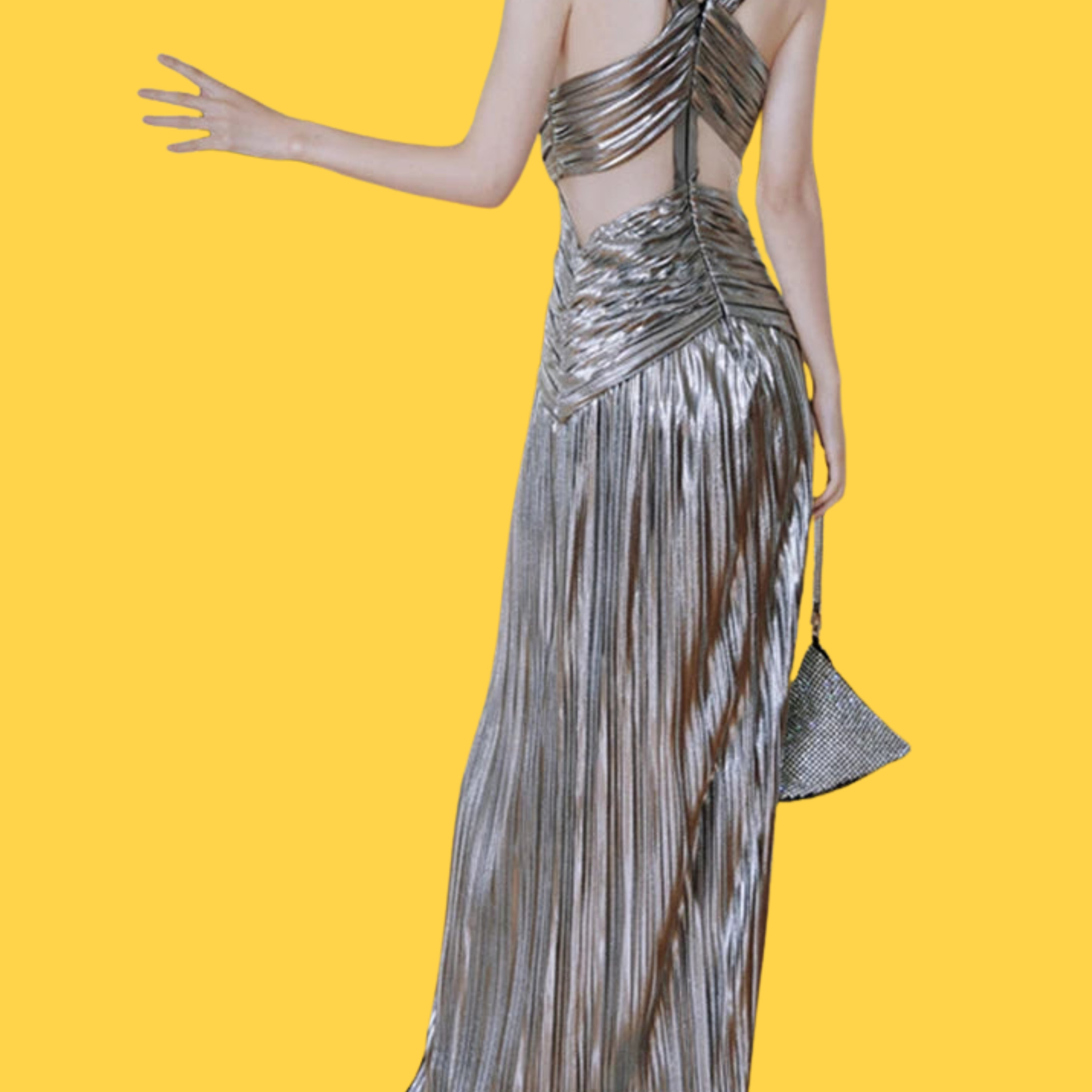 Sleek and sultry with halter cutouts and a flattering silhouette, this dress keeps summer nights effortlessly chic.