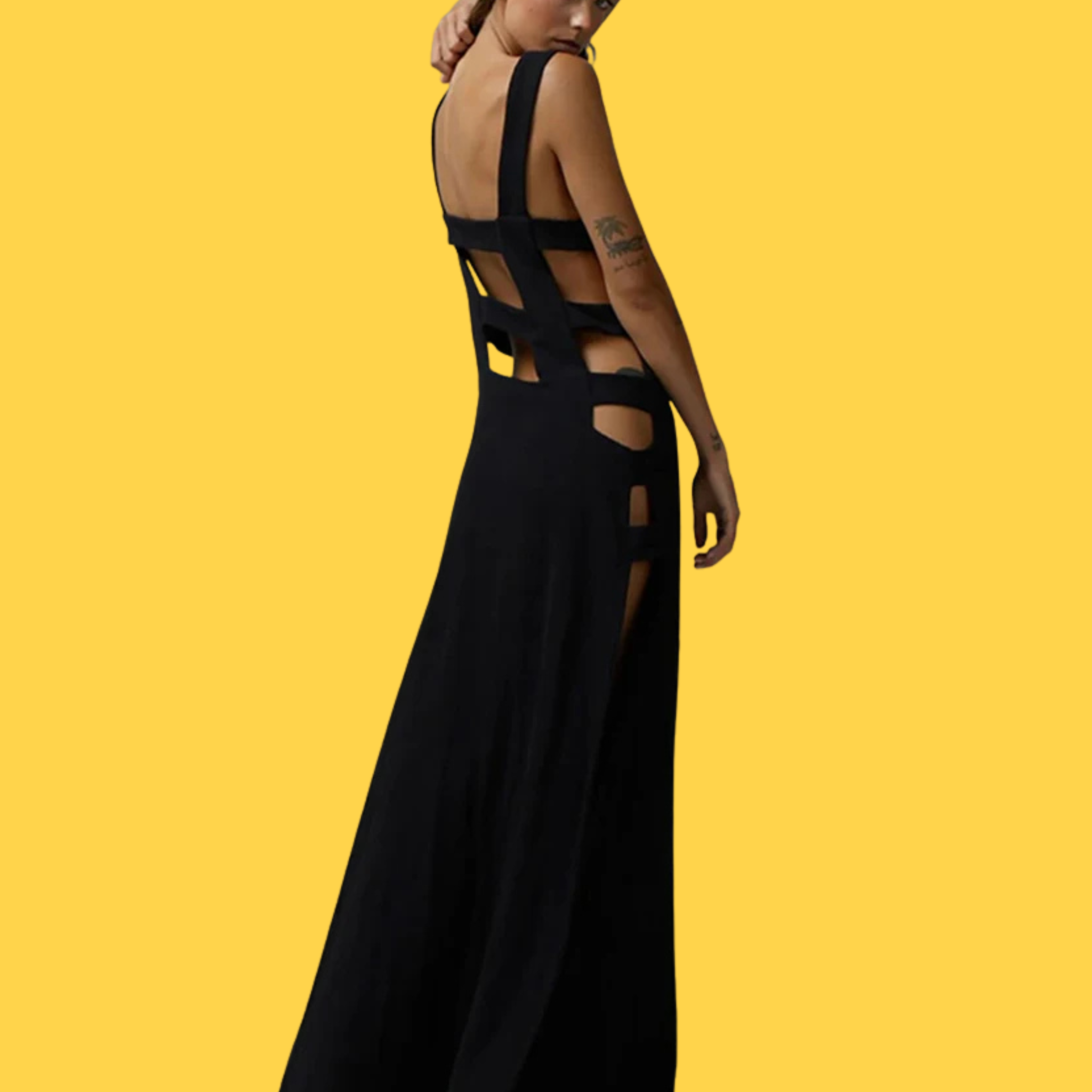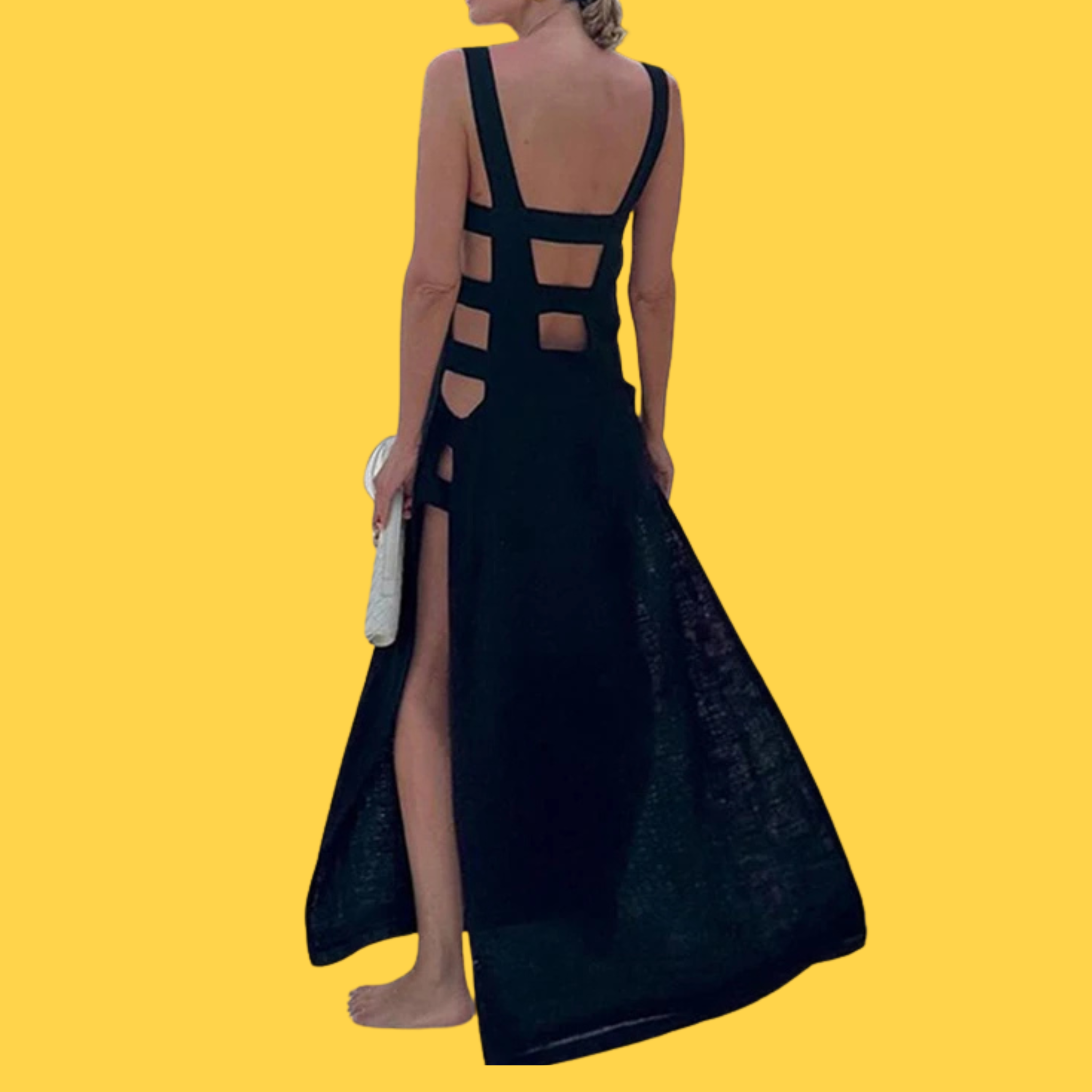 Get ready to turn heads with solid hollow out linen dress. With a square collar, sleeveless design, and high waist split, this dress is both fashionable and alluring. Whether you're hitting the town or just want to make a statement, this dress is perfect for any occasion.